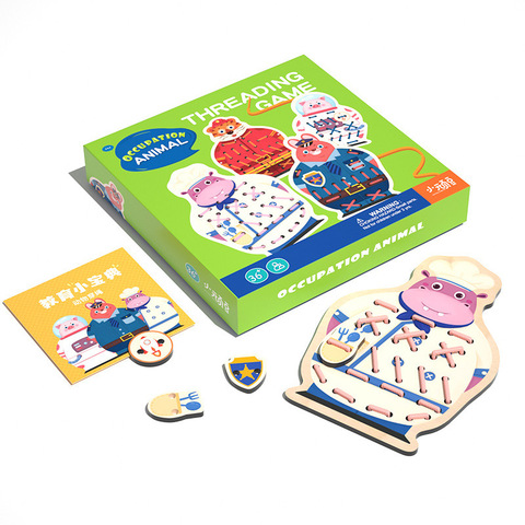 لعبة حبل الحيوانات التعليمية المبكرة للأطفال لعبة التطريز ديي مونتيسوري الأطفال غرامة المهارات الحركية جلد خيوط ألعاب خشبية