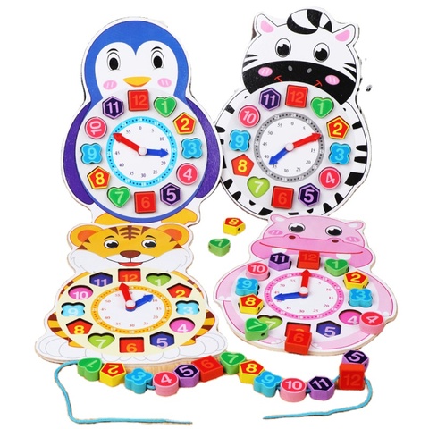 لعبة تعليمية للأطفال, خشبية ، على شكل حبل ، ساعة على شكل حيوان ، بها إضاءة هندسية رقمية ، لعبة تعليمية للأطفال ، مكعبات بناء مطرزة بالخرز