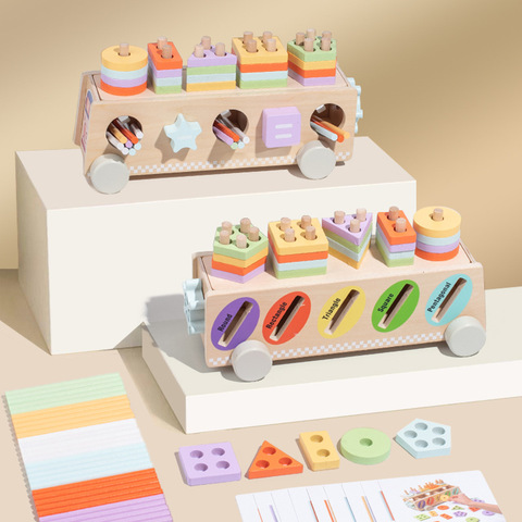 Remolque de bebé multifuncional, coche, forma geométrica educativa, juego a juego, juguete Montessori, juego de conteo de matemáticas para niños, juguetes de madera