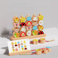 Juego de cognición de animales Montessori para niños, columna a juego, juguete de aprendizaje, bloques educativos apilables, juguete de madera para niños