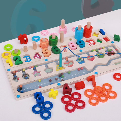 Crianças Beads Maze Early Educacional Cor Classificação Brinquedos para Crianças Número Montessori Placa De Contagem Logarítmica Brinquedo De Madeira